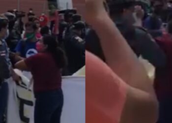 Manaus - AM| <\/strong>Uma professora da rede estadual de ensino, que n\u00e3o teve a identidade revelada, foi agredida fisicamente por um policial militar, ap\u00f3s tentar pendurar um cartaz em protesto contra a visita do Presidente Jair Bolsonaro a Manaus, na na aha de sexta-feira (23), em frente ao Centro de Conven\u00e7\u00f5es Vasco Vasques, na zona Oeste de Manaus.<\/p>\n\n\n\nEm um v\u00eddeo gravado pelo grupo que tamb\u00e9m tentava realizar o protesto, a professora aparece segurando uma parte do cartaz, na tentativa de exib\u00ed-lo. Ela n\u00e3o apenas protestava contra Bolsonaro, mas tamb\u00e9m pedia valoriza\u00e7\u00e3o para professores e educa\u00e7\u00e3o. Um dos policiais que fazia a seguran\u00e7a do local, empurrou a manifestante e, ap\u00f3s o empurr\u00e3o, ela levou uma queda. O policial se retirou do local sem ajud\u00e1-la.<\/p>\n\n\n\n
