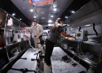\u201cA nossa UTI m\u00f3vel disp\u00f5e de duas macas, a gente tamb\u00e9m disp\u00f5e de dois monitores, sendo que todos eles s\u00e3o multiparam\u00e9tricos, e tamb\u00e9m disp\u00f5e de impress\u00e3o. Se a gente monitorizar o paciente, todos os par\u00e2metros que n\u00f3s utilizarmos, como por exemplo, a satura\u00e7\u00e3o de oxig\u00eanio, batimento card\u00edaco do paciente, press\u00e3o arterial, a gente tem como imprimir esses par\u00e2metros e verificar qual foi o tipo de altera\u00e7\u00e3o\u201d, detalhou a enfermeira intensivista Ana Rita Almeida.<\/p>\n\n\n\n