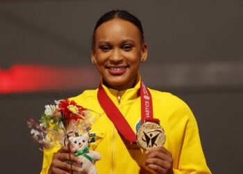 A campe\u00e3 ol\u00edmpica Rebeca Andrade se tornou tamb\u00e9m campe\u00e3 mundial do salto, em Kitakyushu. Foi a primeira medalha da ginasta de 22 anos em Mundiais e a primeira grande conquista apenas dois meses e meio depois de brilhar nas Olimp\u00edadas de T\u00f3quio. E poucas horas depois ela voltou ao p\u00f3dio com uma prata nas barras assim\u00e9tricas. Foi a primeira vez que um ginasta do Brasil conseguiu duas medalhas em um \u00fanico Mundial. Um dia hist\u00f3rico para Rebeca.<\/p>\n\n\n\n