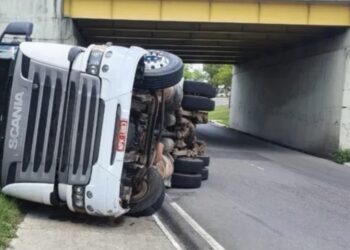 \nNesta sexta-feira (5), o motorista de uma carreta perdeu o controle e tombou na avenida Torquato Tapaj\u00f3s, embaixo de um dos principais viadutos da via. N\u00e3o h\u00e1 informa\u00e7\u00f5es se houve feridos. <\/p>\n\n\n\n