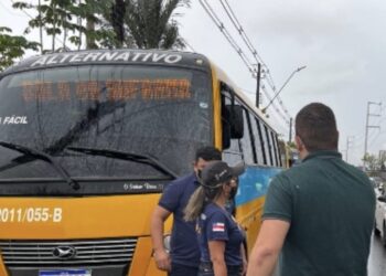 Ao todo, foram abordados 94 \u00f4nibus alternativos (amarelinho) e executivos. Destes, cinco acabaram removidos pelo N\u00facleo Especializado em Opera\u00e7\u00f5es de Tr\u00e2nsito do Detran (Neot) e um pelo IMMU. Um condutor tamb\u00e9m foi preso ap\u00f3s ser abordado pelo agente, ao apresentar uma CNH falsa. Ele foi encaminhado para o 14\u2070 Dip.<\/p>\n\n\n\n