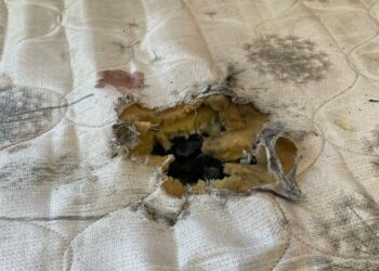 A suspeita \u00e9 que o artefato passou por cima do muro da casa e entrou no quarto, onde foi parar no colch\u00e3o em que a crian\u00e7a estava.<\/p>\n\n\n\n