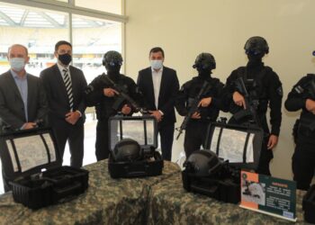 \nEntre os itens entregues \u00e0s for\u00e7as de seguran\u00e7a est\u00e3o bin\u00f3culos de vis\u00e3o noturna, placas de prote\u00e7\u00e3o bal\u00edstica, torniquete t\u00e1tico, manta t\u00e9rmica e kits de atendimento pr\u00e9-hospitalar.<\/p>\n\n\n\n