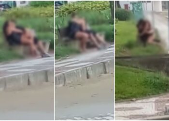 \nNos v\u00eddeos, que viralizaram rapidamente nas redes sociais e, tamb\u00e9m, via WhatsApp, \u00e9 poss\u00edvel notar que o casal repara que estava sendo gravado e, mesmo assim, n\u00e3o se intimida. Algumas pessoas chegam a alertar a dupla da situa\u00e7\u00e3o mas, ainda assim, acabam sendo ignoradas. <\/p>\n\n\n\n
