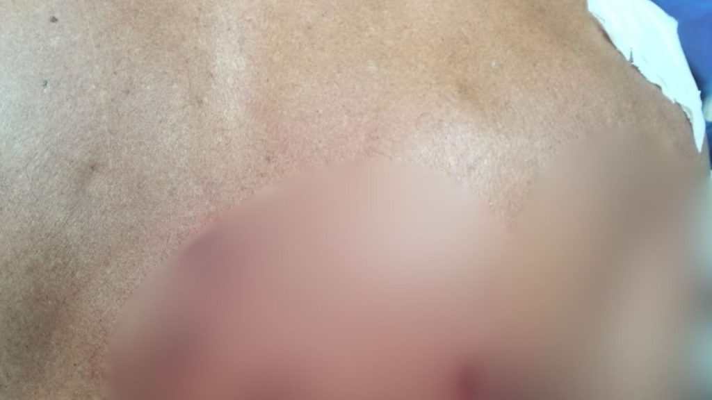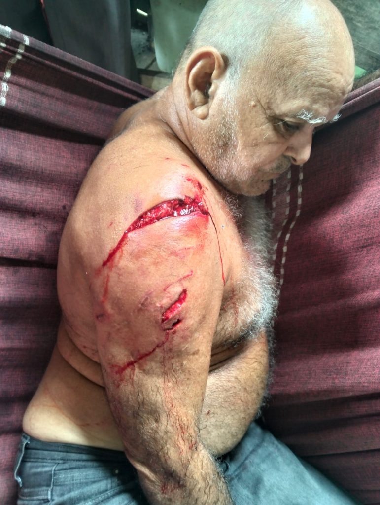 As imagens mostram ferimentos no braço esquerdo e também nas costas do idoso.