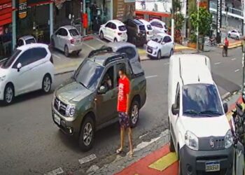 Depois de uma discuss\u00e3o, a v\u00edtima entrou na ag\u00eancia banc\u00e1ria e o outro condutor chegou a percorrer alguns metros e sacou uma arma de fogo e disparou contra o ch\u00e3o, pr\u00f3ximo \u00e0 v\u00edtima. O tiro ricocheteou, quebrou uma das vidra\u00e7as da ag\u00eancia e atingiu a perna da v\u00edtima. <\/p>\n\n\n\n