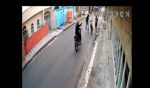Uma câmera de segurança flagrou um assalto praticado por dois motoqueiros na manhã desta quarta-feira (25) na rua 6, no bairro Alvorada 2, Zona Centro-Oeste de Manaus.