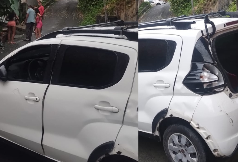 Imagens do local mostram o carro bastante danificado no canteiro da via, atraindo a atenção de quem passava pelo local. De acordo com informações preliminares, o condutor tentava vencer a subida quando ocorreu a perda de controle.