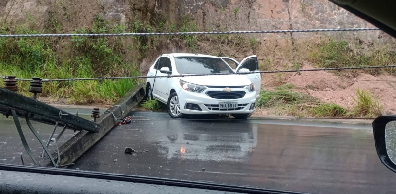 O carro ficou atravessado no caminho, mas o motorista que não teve o nome identificado saiu sem ferimentos graves. Agora ele vai ter de arcar com os prejuízo.