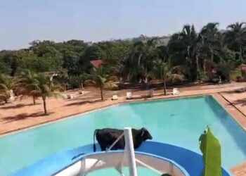 Um boi se refrescou na piscina de um clube de Nova Granada (SP) ap\u00f3s escorregar em um tobo\u00e1gua. A cena inusitada chamou aten\u00e7\u00e3o de quem estava no local, na manh\u00e3 de s\u00e1bado (6). <\/p>\n\n\n\n