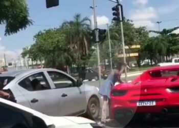 O empres\u00e1rio Alcir Marques de Morais contou que uma mulher arranhou e furou a Ferrari dele com uma faca ap\u00f3s o filho n\u00e3o dar dinheiro a ela no sinal em Goi\u00e2nia.<\/p>\n\n\n\n