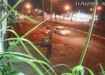 Nas imagens, \u00e9 poss\u00edvel ver que o carro aparece em alta velocidade e o motorista joga o ve\u00edculo com tudo para cima do motociclista, que se choca com um poste. No momento da colis\u00e3o, a luz do poste apaga por conta do impacto. A v\u00edtima de 39 anos foi socorrida ao Hospital Municipal de Paul\u00ednia com m\u00faltiplas fraturas. <\/p>\n\n\n\n