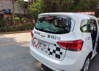 As informa\u00e7\u00f5es iniciais s\u00e3o de que nenhum policial se feriu e que a viatura sofreu danos no teto, no vidro traseiro, al\u00e9m de quatro marcas de disparos no para-brisa e no painel. <\/p>\n\n\n\n