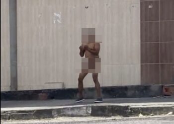 \nUm policial militar ficou nu e atirou contra o ch\u00e3o na Rua Itamb\u00e9, no bairro Jardim Cruzeiro, em Feira de Santana, a cerca de 100 km de Salvador, na manh\u00e3 de domingo (3), de acordo com a Pol\u00edcia Militar, ele estava em surto psiqui\u00e1trico.<\/p>\n\n\n\n
