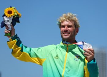 Nesta quinta-feira (5), o skate brasileiro voltou a ver um representante do pa\u00eds no p\u00f3dio das Olimp\u00edadas de T\u00f3quio. Sob um sol de 34\u00baC no Centro de Esportes Urbanos de Ariake, Pedro Barros levou a medalha de prata na decis\u00e3o da modalidade park. O ouro ficou com o australiano Keegan Palmer e o bronze com o norte-americano Cory Juneau. <\/p>\n\n\n\n