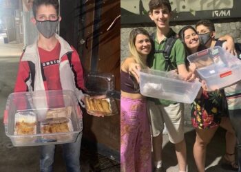 As imagens mostram, antes da entrega da blusa, o homem dando uma marmita para a pessoa que est\u00e1 com um cobertor sobre o corpo. O vendedor Yuri Rafael Vartha, que decidiu compartilhar as imagens do local em que trabalha, contou ao G1 que o rapaz da cal\u00e7ada tremia de frio naquela tarde.<\/p>\n\n\n\n