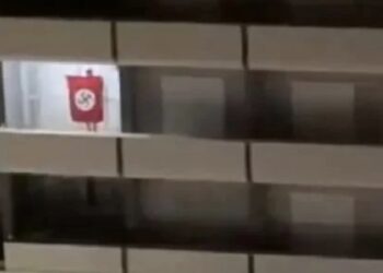 Florian\u00f3polis - SC| <\/strong>Um flagrante ocorrido na sexta-feira (14), ganhou as redes sociais, no v\u00eddeo mostra um homem balan\u00e7ando uma bandeira nazista na sacada de um apartamento, no Centro de Florian\u00f3polis.<\/p>\n\n\n\n