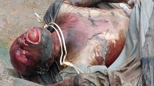 A vítima estava enrolada em um lençol, ele tinha fios atados ao pescoço, pernas e mãos.