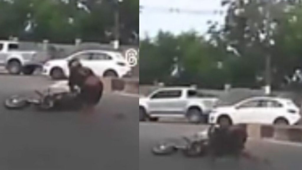 Mesmo com a violência do impacto, o homem sofreu apenas escoriações e conseguiu sair do local por conta própria logo após a queda. O tráfego seguia normalmente no momento do acidente, e o motociclista não foi atingido por outros veículos.
