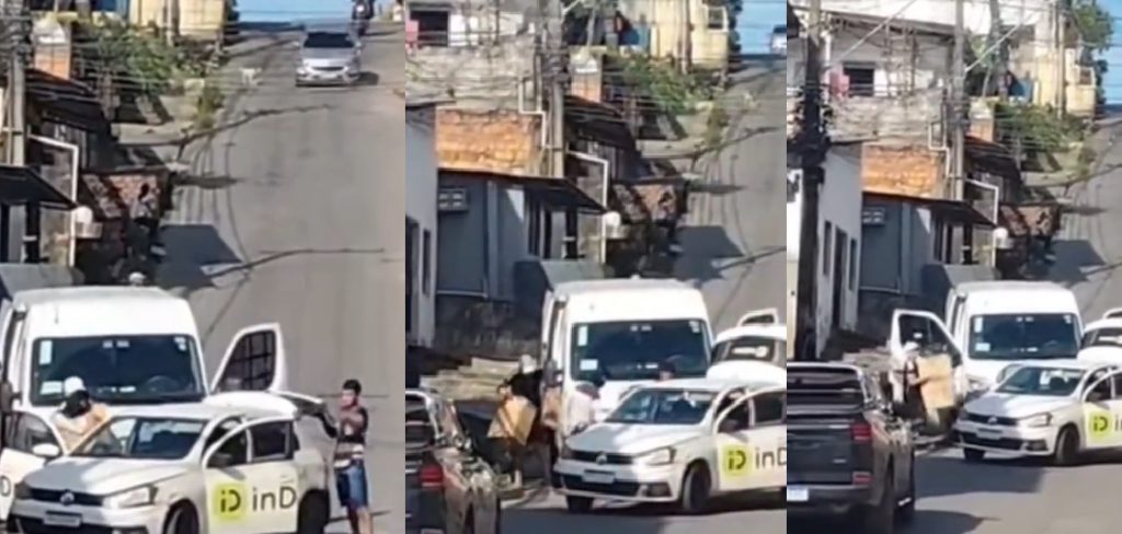 Outras pessoas, inclusive dois em uma moto, também presenciaram o crime. “Ninguém faz nada”, diz a testemunha. “O que tu quer que façam?”, questiona o outro rapaz.