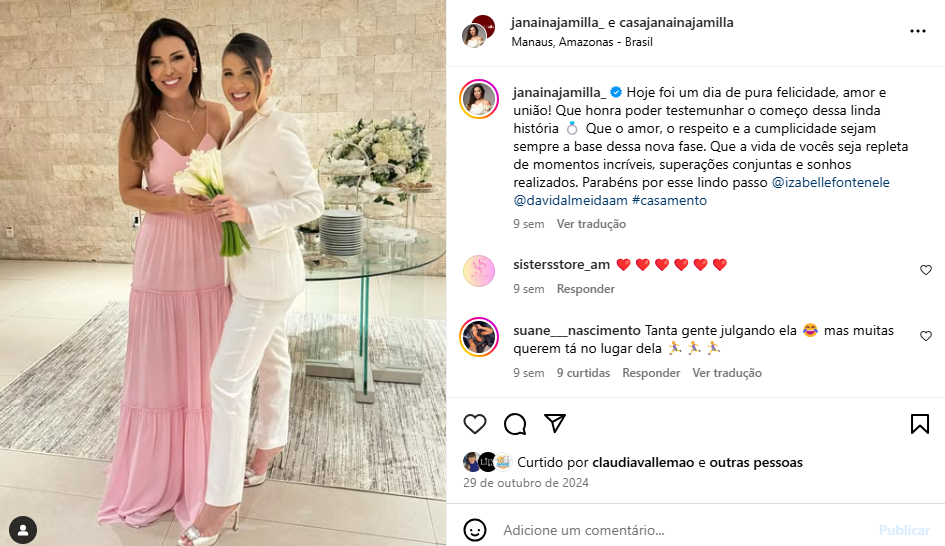 Além da primeira-dama prestigiar as roupas da loja da amiga, Izabelle também tem sido acompanhada por Janaína, como na posse do prefeito, no Teatro Amazonas, no dia 1º de janeiro, e também no Ano Novo na Ponta Negra, onde fez questão de postar foto com o casal que a “apadrinhou” e a ingressou na política amazonense mesmo contra a vontade do povo.