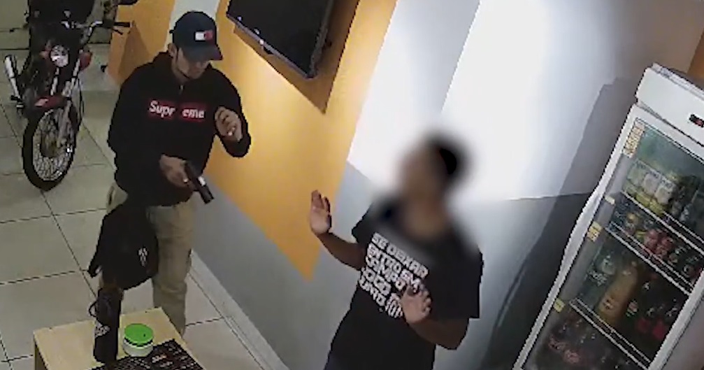 Nas imagens é possível ver o crime em execução e o medo do gerente de ser morto. Ele coloca as mãos para o alto, mas mesmo assim é tratado com violência. O caso ocorreu esta semana em Londrina, no Paraná.