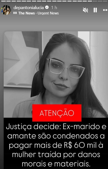 A deputada federal Antônia Lúcia foi às redes sociais nesta sexta-feira (5) avisar que mulher traída tem direito a receber indenização. A esposa de Silas Câmara segue em campanha acusando o marido de traição. Ela compartilhou nos stories do Insta um caso onde uma mulher ganhou R$ 60 mil do marido e da amante.