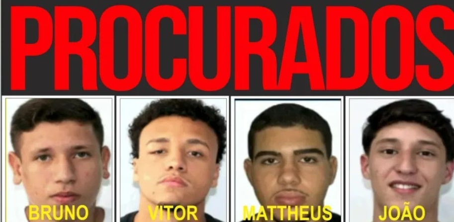 Os quatro foragidos por estupro coletivo contra uma jovem de 17 anos foram identificados como Bruno Felipe dos Santos Allegretti, de 18 anos; João Gabriel Xavier Bertho, de 19 anos, Mattheus Verissimo Zoel Martins, de 19 anos e Vitor Hugo Oliveira Simonin, de 18 anos.