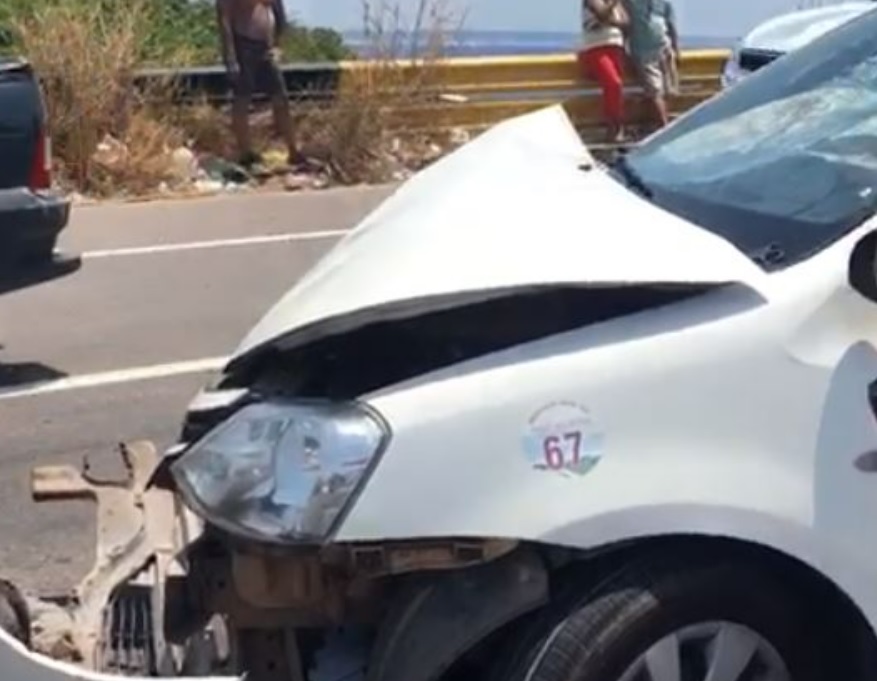 Não se sabe o que teria provocado o choque, que envolve três carros e deixa o trânsito lento na ponte e entorno, onde o fluxo de veículo é grande nesse último dia de feriadão.