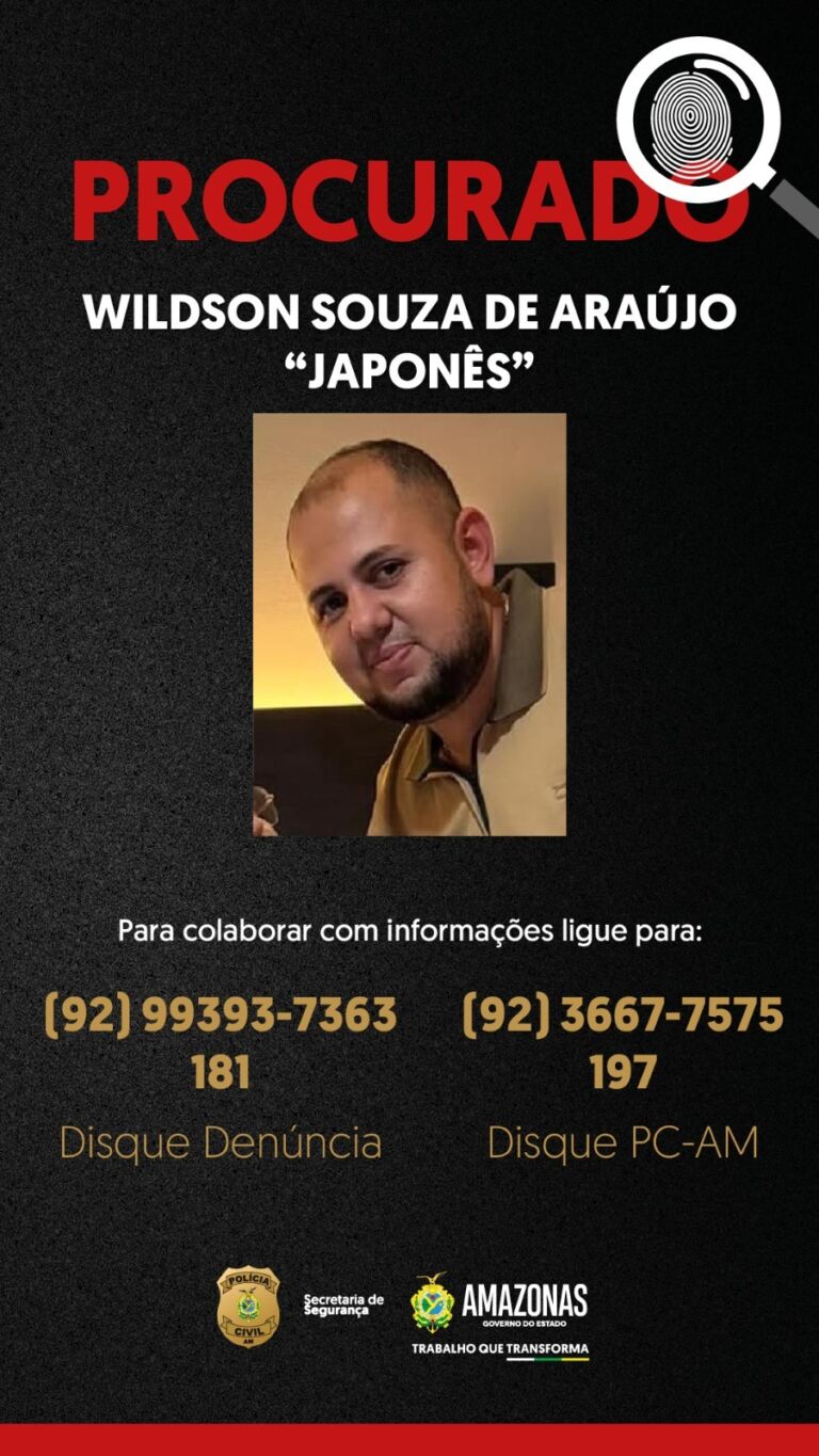 A PC-AM pede que qualquer informação sobre o paradeiro de Wildson Souza de Araújo seja repassada pelos números (92) 99393-7363, da DEP de Manacapuru; 197 e (92) 3667-7575, da PC-AM; ou 181, da Secretaria de Segurança Pública do Amazonas (SSP-AM). A identidade do denunciante será preservada, garantiu a autoridade policial.