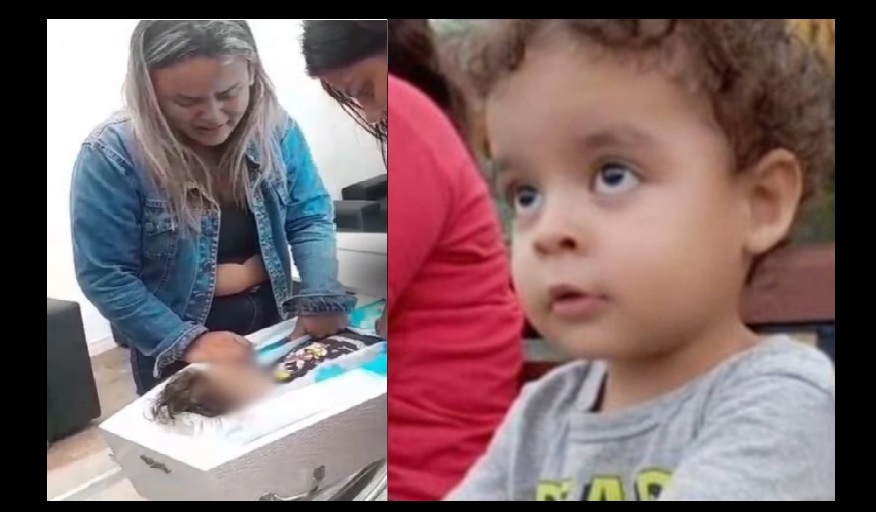 Enquanto a polícia caça o pai, a mãe do pequeno Manoel Franco de Meto Neto de 3 anos, chora na tarde desta sexta-feira (23), ao lado do caixão do filho, antes do sepultamento dele em Manaus.