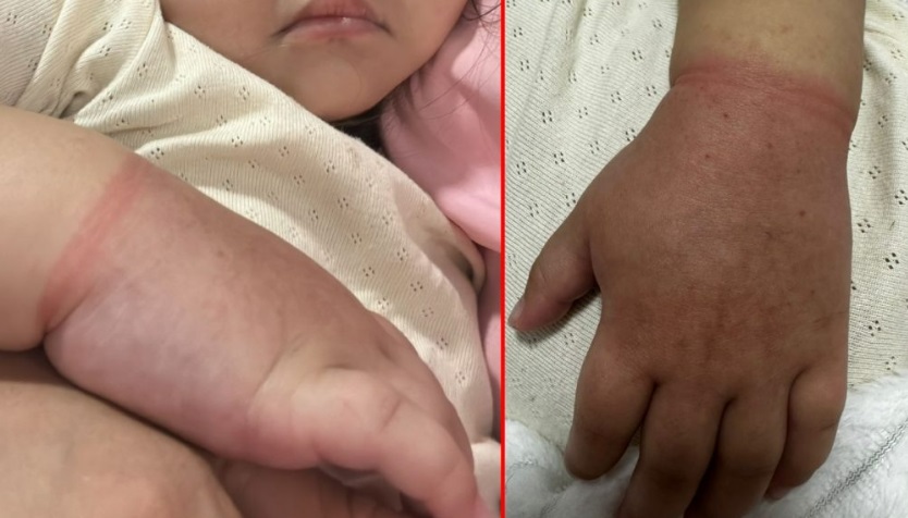 Carolina disse que a filha Lohana foi quem tirou o elástico após se sentir mal. “Ela deve ter pensado: ‘Vou fazer o trabalho que a mamãe esqueceu’. Pegou os três elásticos e colocou no bracinho. Até aí, tudo normal”, mas a menina começou a chorar.