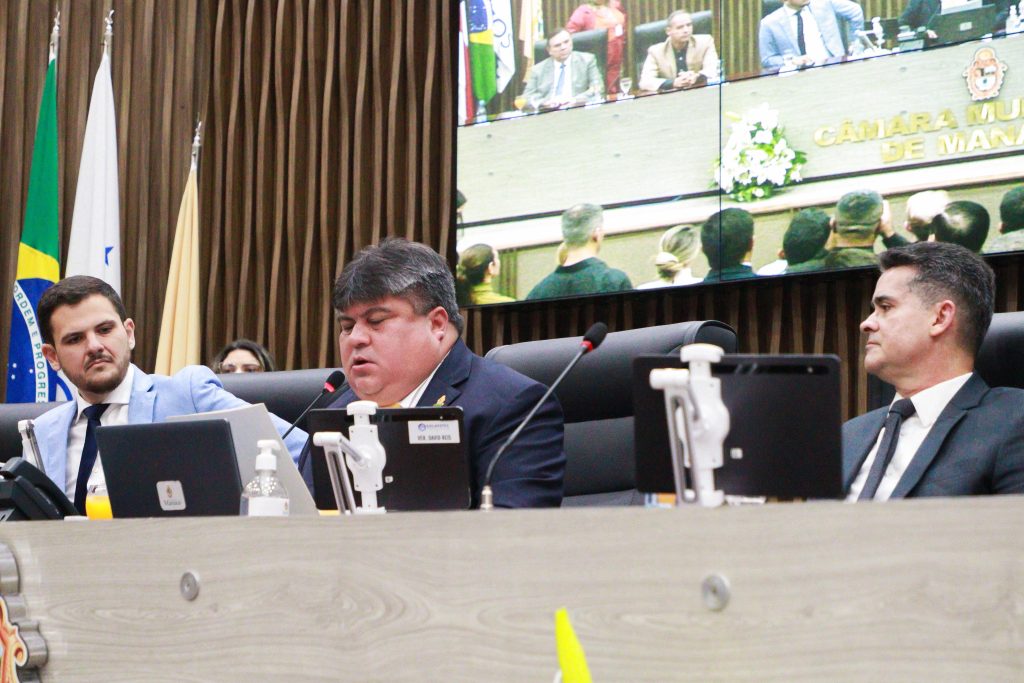 Na sequência, o presidente da CMM destacou o papel do Legislativo no cumprimento dos trâmites legais e declarou oficialmente a vacância do cargo, efetivando a posse do novo chefe do Executivo municipal.