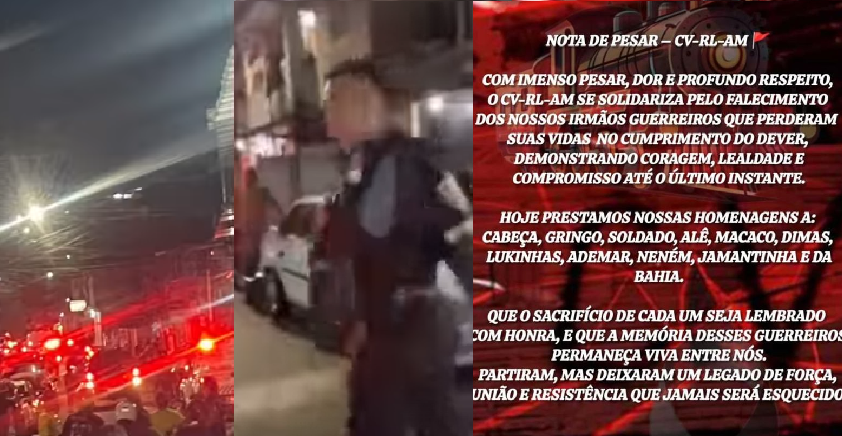 Um comunicado atribuído supostamente ao CV-AM informou que 11 amazonenses morreram durante a operação no Rio, nos complexos da Penha e do Alemão. Uma nota de pesar foi postada lamentando as mortes de “Cabeça”, “Gringo”, “Soldado”, “Alê”, “Macaco”, “Dimas”, “Lukinhas”, “Ademar”, “Neném”, “Jamantinha” e “Da Bahia”. Oficialmente, as autoridades amazonenses confirmaram seis óbitos.