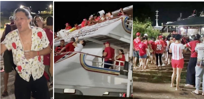 Após mais de duas horas de atraso, com a capacidade regularizada e a ordem restabelecida, o grupo de torcedores finalmente partiu para participar da festa que integra o calendário do Festival Folclórico de Parintins.