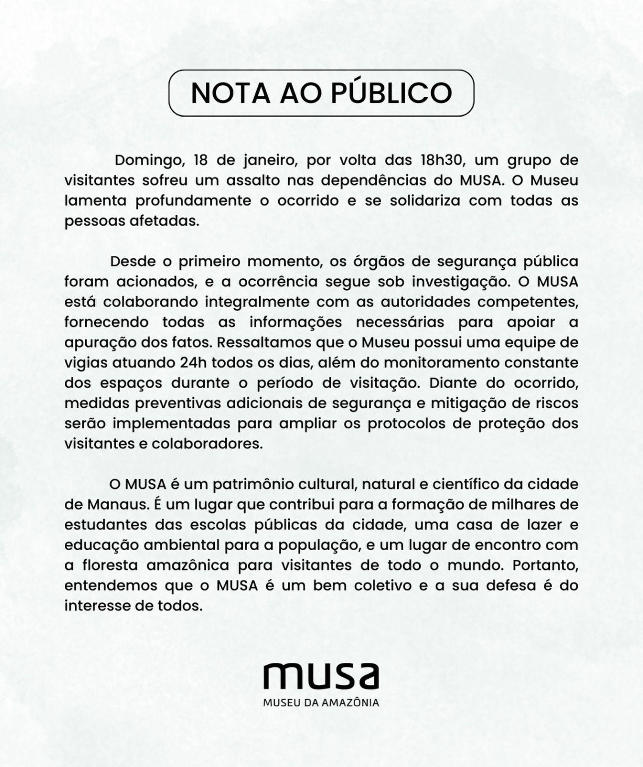 Uma quadrilha de 5 bandidos amarrou e assaltou turistas dento do Museu da Amazônia (Musa), neste domingo (18). As vítimas foram jogadas no banheiro e tiveram dinheiros e pertences levados.