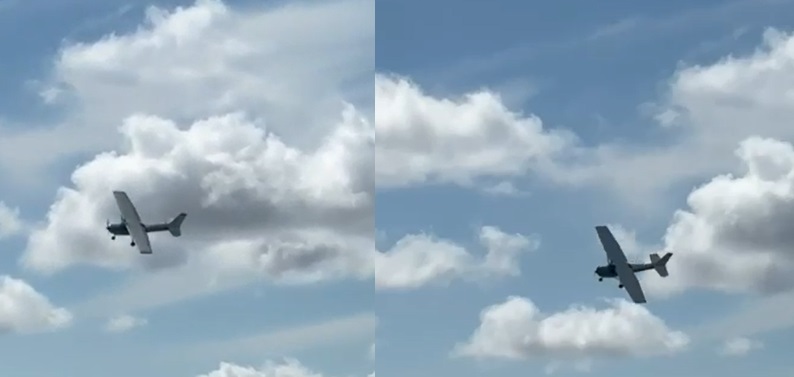 Nas imagens é possível ver o avião guinando para a esquerda, durante o voo que era uma manobra de instrução do piloto para o aluno.