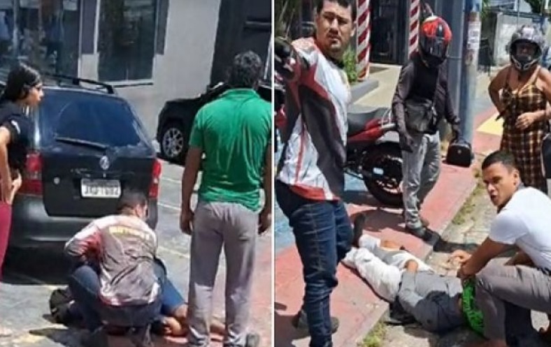 Ambos foram arremessados a 20 metros do local do impacto e escaparam de morrer por pouco, já que carros tiraram “fino” dos homens no chão.