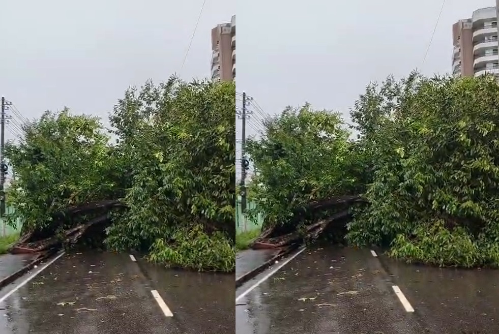 Uma árvore tombou no meio da rua na tarde desta sexta-feira (23), bloqueando simplesmente aa avenida Darcy Vargas, bem na hora das pessoas voltarem para casa, perto da Universidade do Estado do Amazonas (UEA).