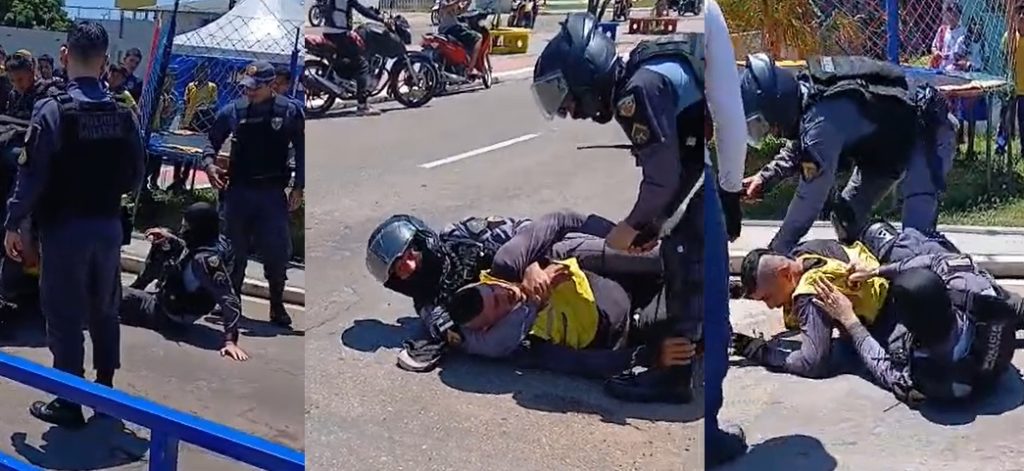 “Bin Laden” foi preso em Coari, após entrarem luta contra a polícia num vídeo compartilhado nesta quinta-feira (26), nas redes sociais. Algumas pessoas chegam a gritar que ele é trabalhador, mas não teve jeito.
