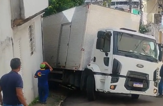 Vizinhos filmaram o caminhão embutido na entrada da residência. Há relatos do mesmo tipo de acidente no local, onde a ladeira exige perícia e mecânica em dia.