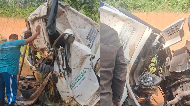 Um caminhão ficou totalmente destruído após uma colisão grave registrada na manhã desta terça-feira (18) no KM 130 da rodovia AM-010, em Itacoatiara, interior do Amazonas. O motorista do veículo ficou preso nas ferragens e precisou ser resgatado por testemunhas que prestaram os primeiros socorros enquanto aguardavam a chegada dos bombeiros.