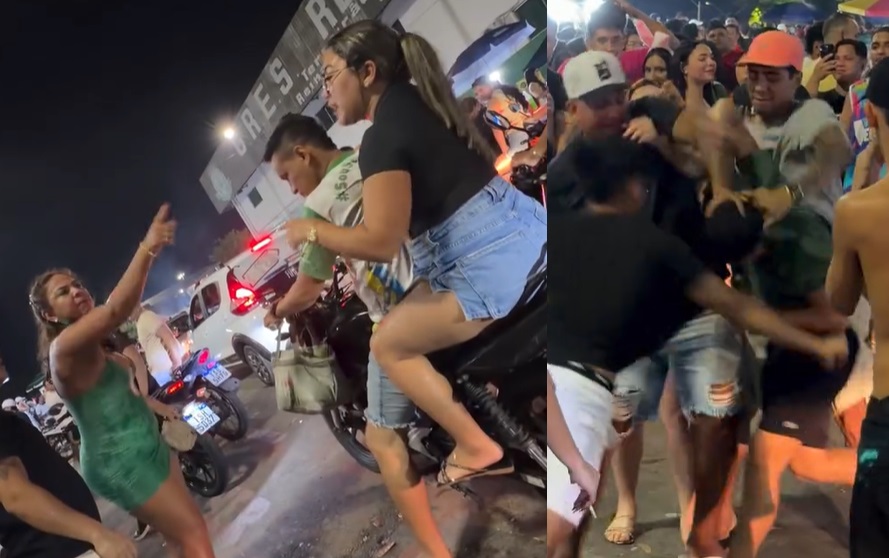 As blindadas brigaram, os machos se meteram no meio e também brigaram, e restou às testemunhas filmar a confusão e compartilhar nas redes sociais.