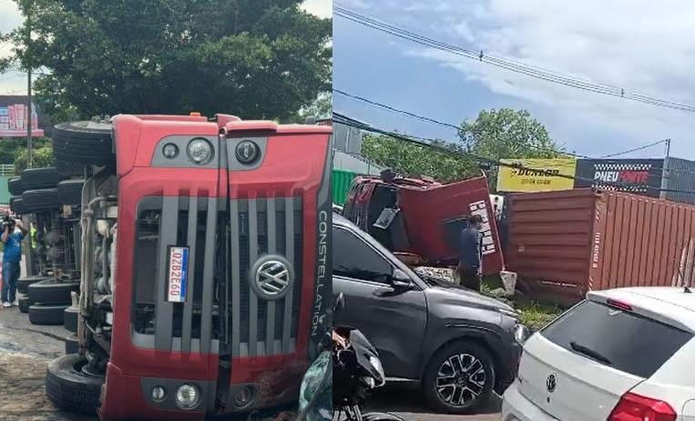 Uma carreta tombou agora à tarde e deixou o motorista ferido na cabeça nesta quarta-feira (8) na Avenida Cosme Ferreira, em Manaus.