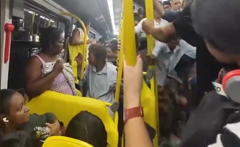 O ato inicial de agressão pareceu incentivar outros presentes, que passaram a também atingi-la, enquanto algumas pessoas tentavam conter os agressores e separar os envolvidos, em meio ao caos instaurado dentro do coletivo.