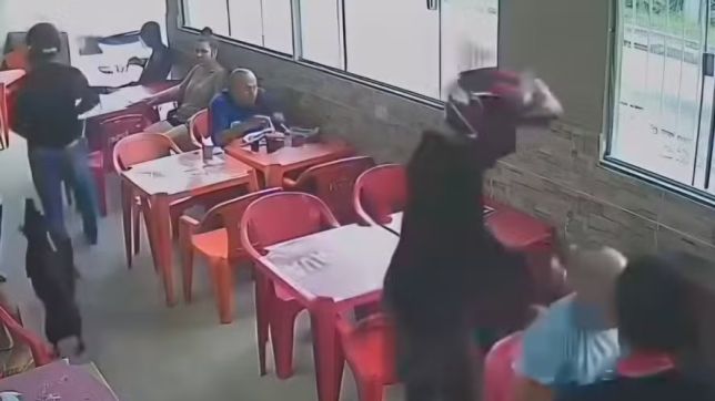 Câmeras de segurança registraram a ação. Nas imagens, é possível ver um dos assaltantes descendo da moto e entrando no local de forma abrupta, enquanto o comparsa permanece na garupa, vigiando a rua. Armado, o ladrão anuncia o roubo de maneira agressiva e passa a recolher dinheiro e objetos de valor das vítimas.