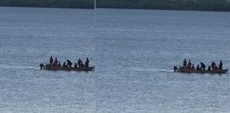 Nenhuma autoridade confirma qual a história é a verdadeira, mas imagens mostram uma embarcação em busca do corpo de Jeanderson.