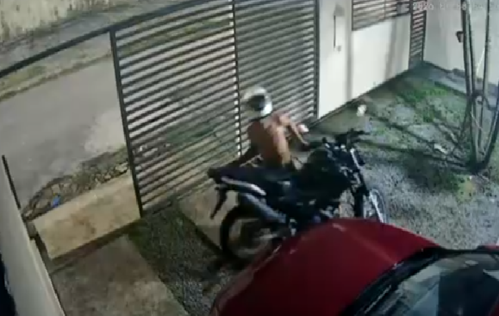 Um furto de motocicleta foi registrado por câmeras de segurança na madrugada desta quinta-feira no loteamento Rio Piorini, bairro Colônia Terra Nova, Zona Norte de Manaus. As imagens mostram o momento em que um homem, usando capacete, arromba a fechadura do portão da garagem e retira uma motocicleta Yamaha Crosser, de cor preta e placa QZZ 0C62.