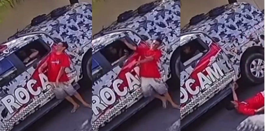 O policial que comete a agressão pouco se importa, abaixa o vidro, acerta o homem e não se mexe ao ver ele caído. Nas imagens não possível ver quantos policiais estavam na viatura.