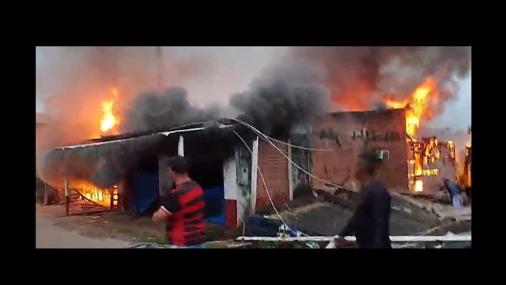 Um grande incêndio queimou totalmente uma casa e um mercadinho neste domingo (5), no Careiro da Várzea, na Região Metropolitana de Manaus.